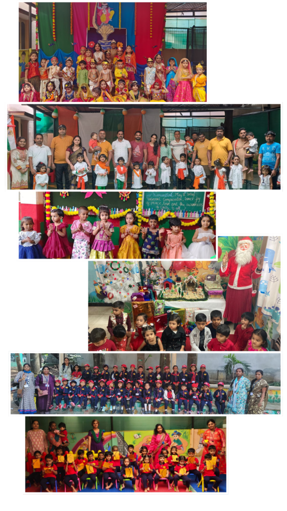 • Cultural Celebrations: Festivals like Diwali, Christmas, and Earth Day are celebrated to teach cultural significance and global awareness.